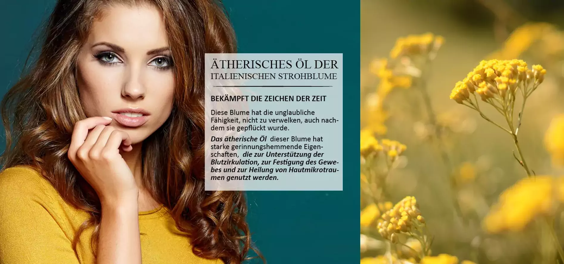 Diese regenerierende Wirkung wird durch das ätherische Öl der Italienischen Strohblume weiter verstärkt.