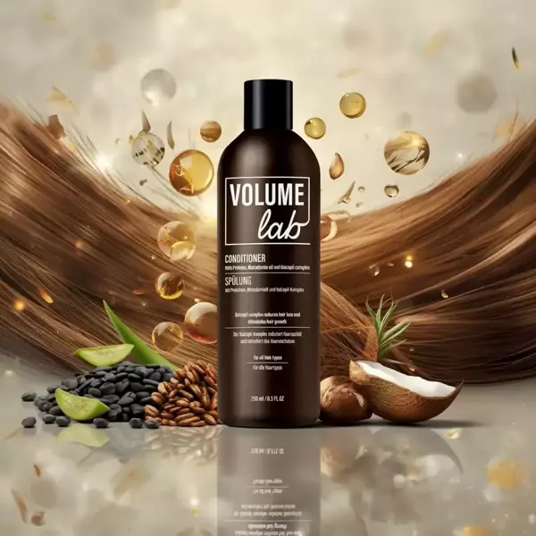Volume Lab Haarmaske (100 ml): AQUA, CETEARYL ALCOHOL, BEHENAMIDOPROPYL DIMETHYLAMINE, RICINUS COMMUNIS SEED OIL, COCOS NUCIFERA OIL, MACADAMIA TERNIFOLIA SEED OIL, HYDROXYETHYL UREA, LACTIC ACID, BENZYL ALCOHOL, SODIUM BENZOATE, QUATERNIUM-80, POTASSIUM SORBATE, HYDROLYZED SOY PROTEIN, HYDROLYZED WHEAT PROTEIN, D-PANTHENOL, GLYCOLIC ACID, GLYCERIN, PEG-7 GLYCERYL- COCOATE, LAURYL GLUCOSIDE, CAPRYLYL/CAPRYL GLUCOSIDE, BIOTIN, FRAGRANCE, PROPYLENE GLYCOL, PHENOXYETHANOL, PROPANEDIOL, ARGININE, GLYCINE SOJA GERM EXTRACT, TRITICUM VULGARE GERM EXTRACT, GLUCONOLACTONE, CALCIUM GLUCONATE.